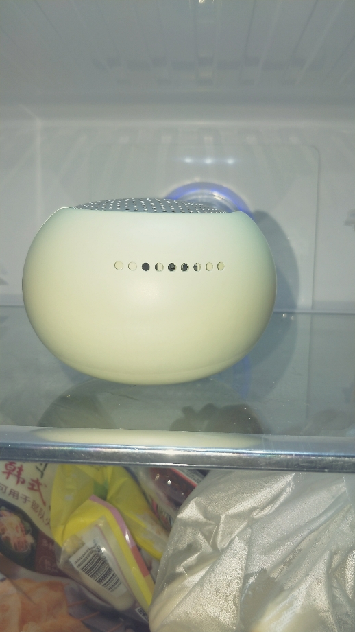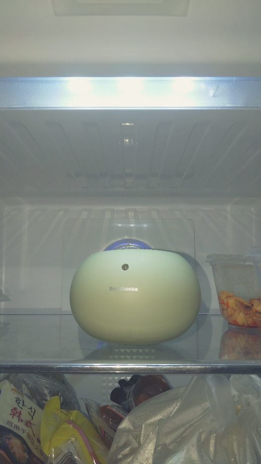 从外观来看,舌尖卫士是一个地球形状的设备,外观采用传统家电的家居风格,浅色简单的外观让设备本身和冰箱更搭调,这样占地面积小了好多,然让冰箱空间宽敞一些!