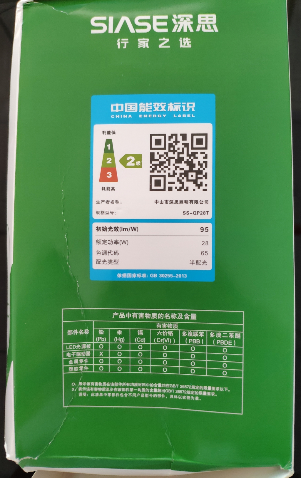 能效只有2级,想想还是有点小失望,开灯后发热也是比较明显,不过塑料外壳倒不至于说烫手