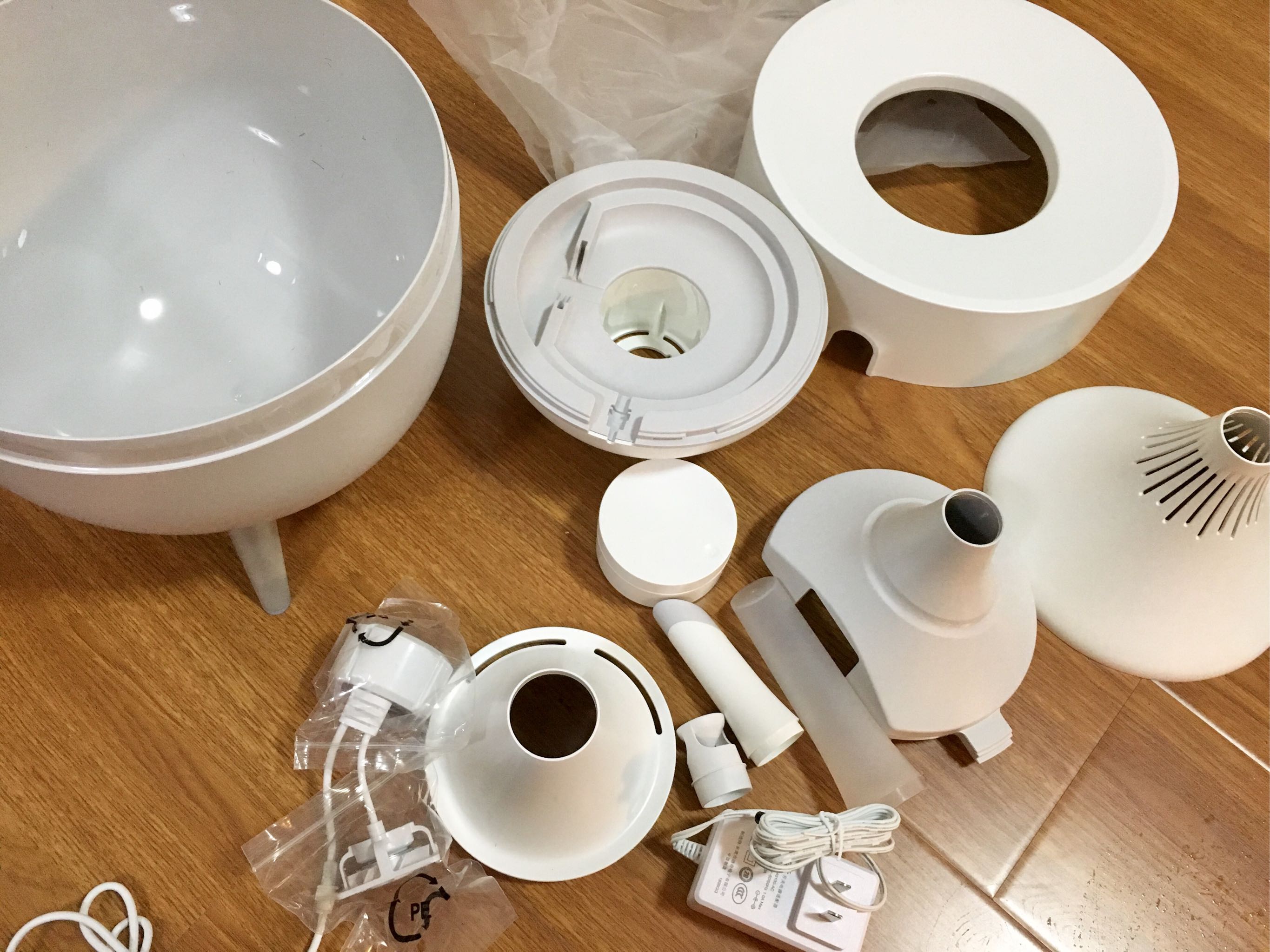 连说明书都不用看,轻松快速的安装完毕~电源打开,立马出雾,雾量很多很均匀细腻,而且还没什么声音,睡眠质量不被影响~