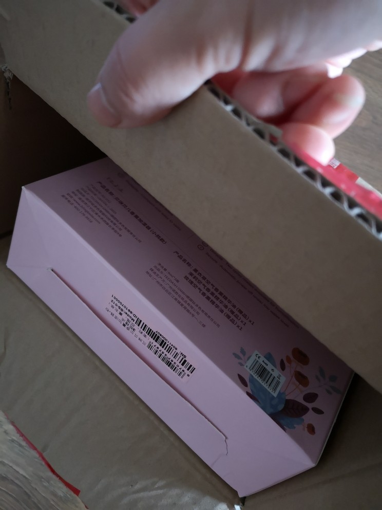 拿到快递第一时间打开,东西果然是便携式,整个包装有两只摊开手这么大,拿出来就一只手拿着,粉色很少女心。