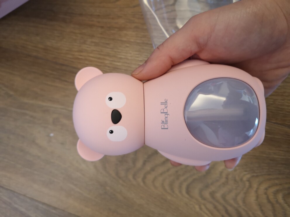 缺点:瓶身是粉色,如果数据线也是粉色就更好了。开关按钮不知道是不是第一次开,需要长按三秒还是怎么,第一次轻轻按没效果。看说明书也没说。