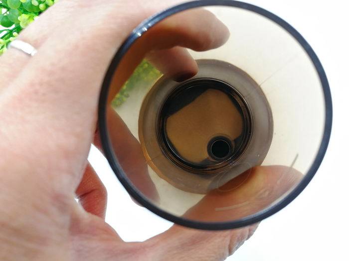 喷雾就是从中间的圆孔里面喷出来的,平时不用的时候,随产品附赠的一个保护皮套,可以盖回去,防止喷雾口损伤和积灰。使用的时候,这些不用的小配件你都可以放在圆筒形的储存盒里面保管。充电口的设计很有意思,隐藏在底部的凹槽里面。开关也是在底部,所以放眼看上去,机身部位的设计就一个按键,简单明了。