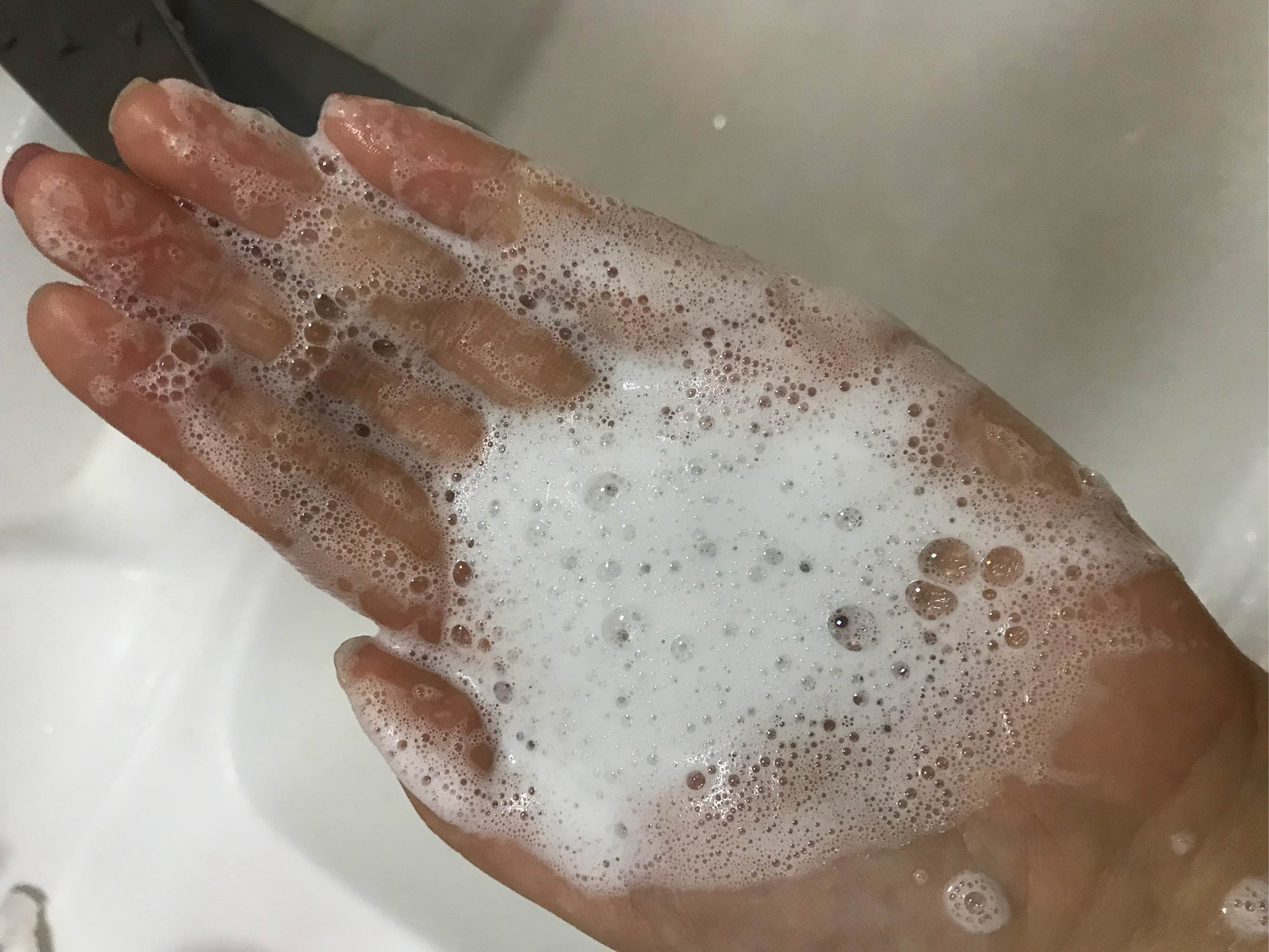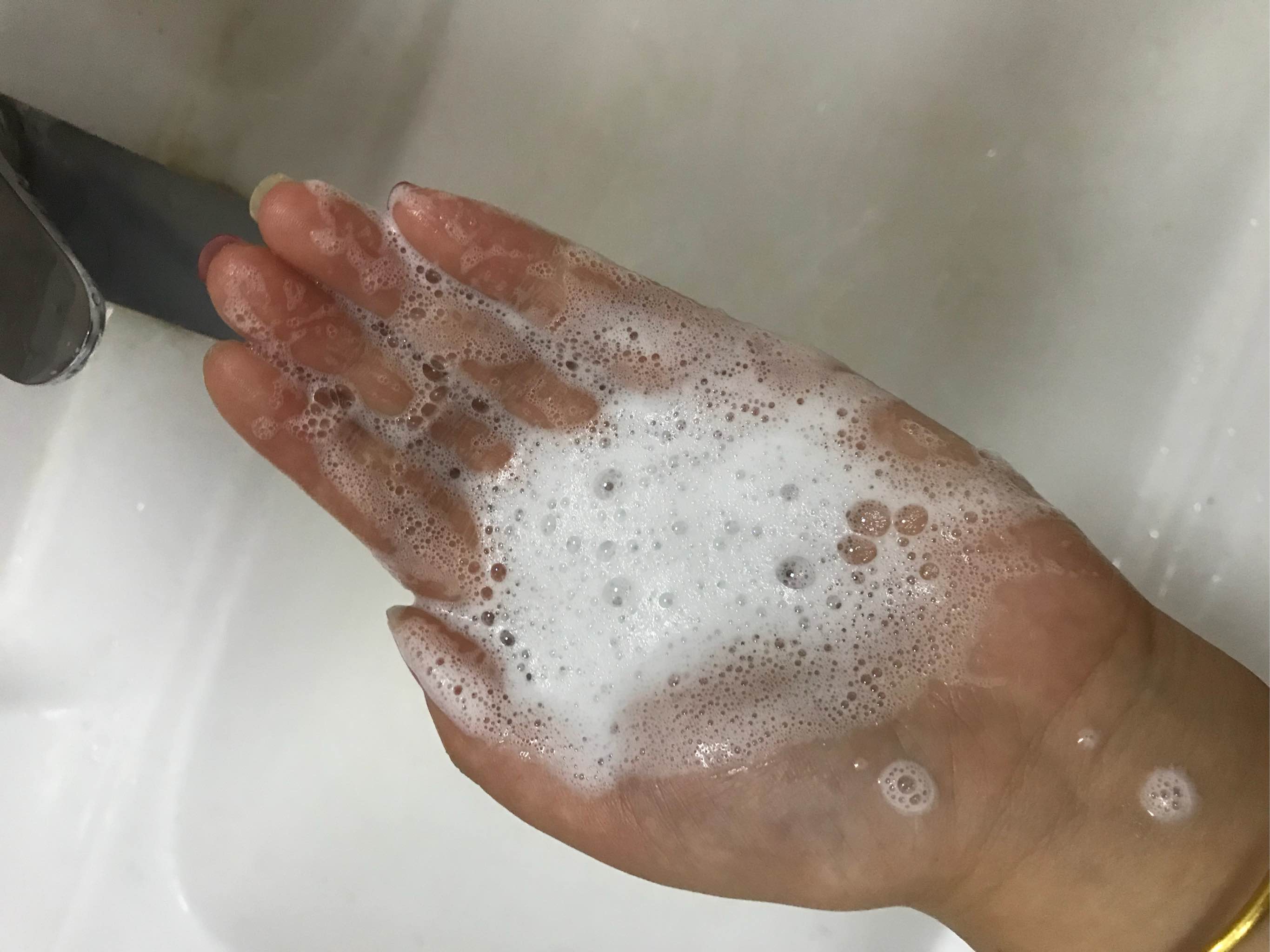 接了水打的泡沫。打泡沫的时候感觉洗面奶特别顺滑,很容易就打出泡沫了。虽然泡沫不是特别丰富,但是洁净效果不错哒。