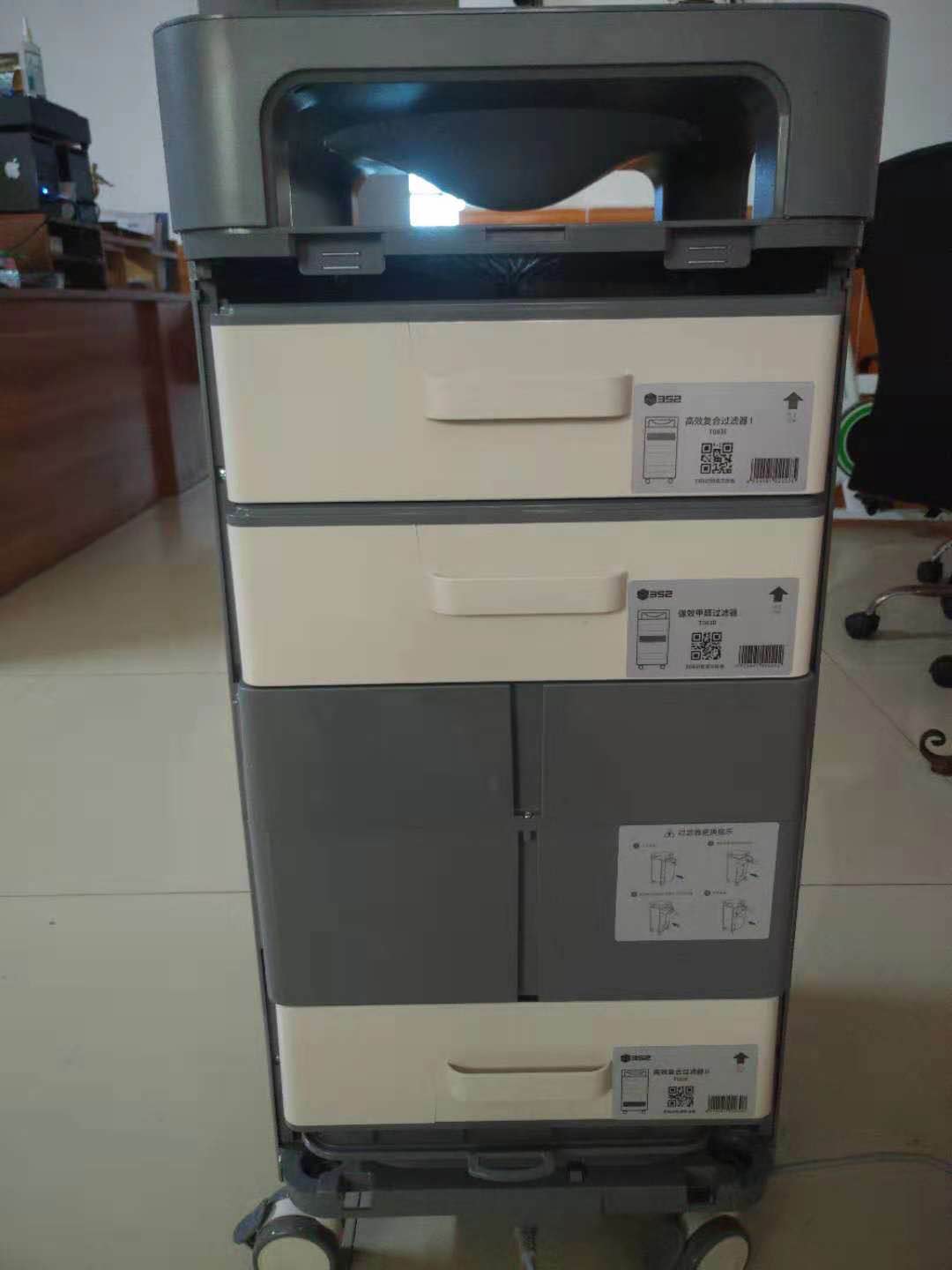 不得不提一下这个轮子,我家里也有其他净化器,只有352有推轮。不得不说太方便了,我是推着它在每个房间都工作了一番。