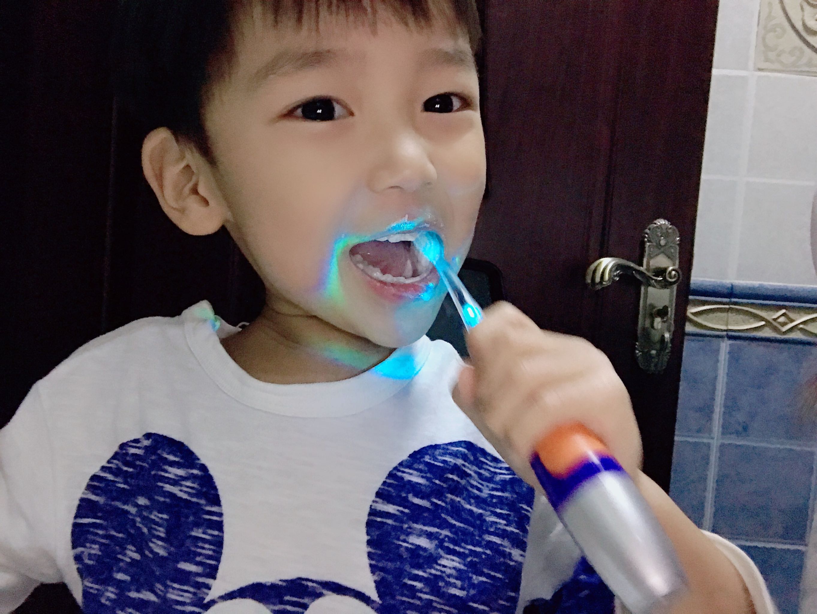 优点:发光:之前用普通的牙刷,每次检查牙齿里面还有没有食物残渣都特别麻烦,再加上晚上光线差,看都看不清。现在有了这款电动发光牙刷,检查口腔特别方便,小朋友也不排斥 震动:频率适中,静音,小朋友不会害怕