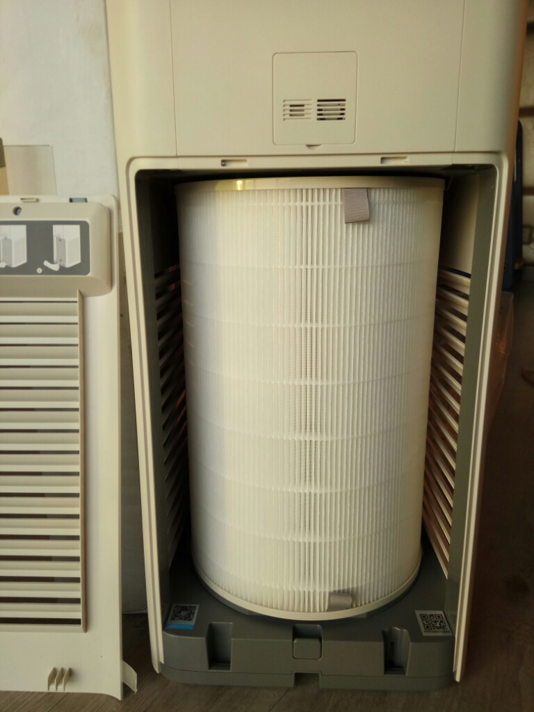 这款352品牌的空气净化器所采用的过滤器,绝对是我见过有史以来最大的,圆桶型哌4平米的H13级滤纸,实现360度吸附,而且更换过滤器价格也很便宜。