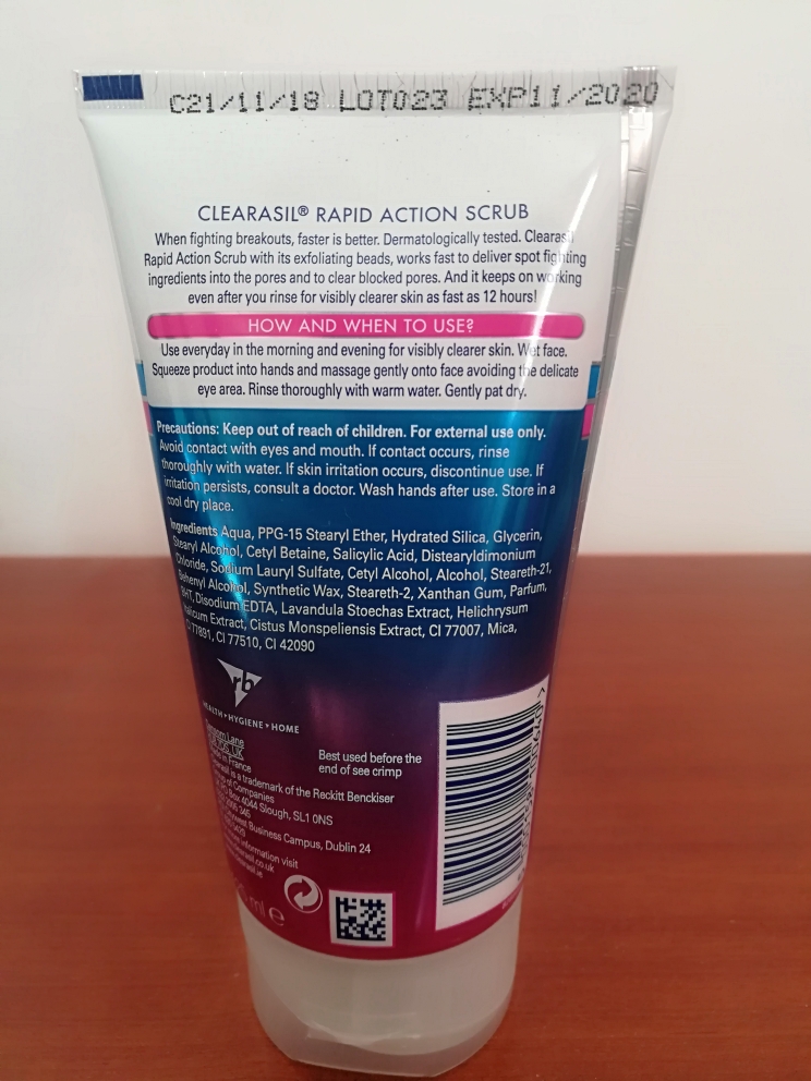 瓶身是玫红色与蓝色相间,很亮眼。磨砂膏的容量很大,125ml。瓶口设计很好,可以很轻松打开。膏体是清爽水润的淡蓝色,很漂亮。