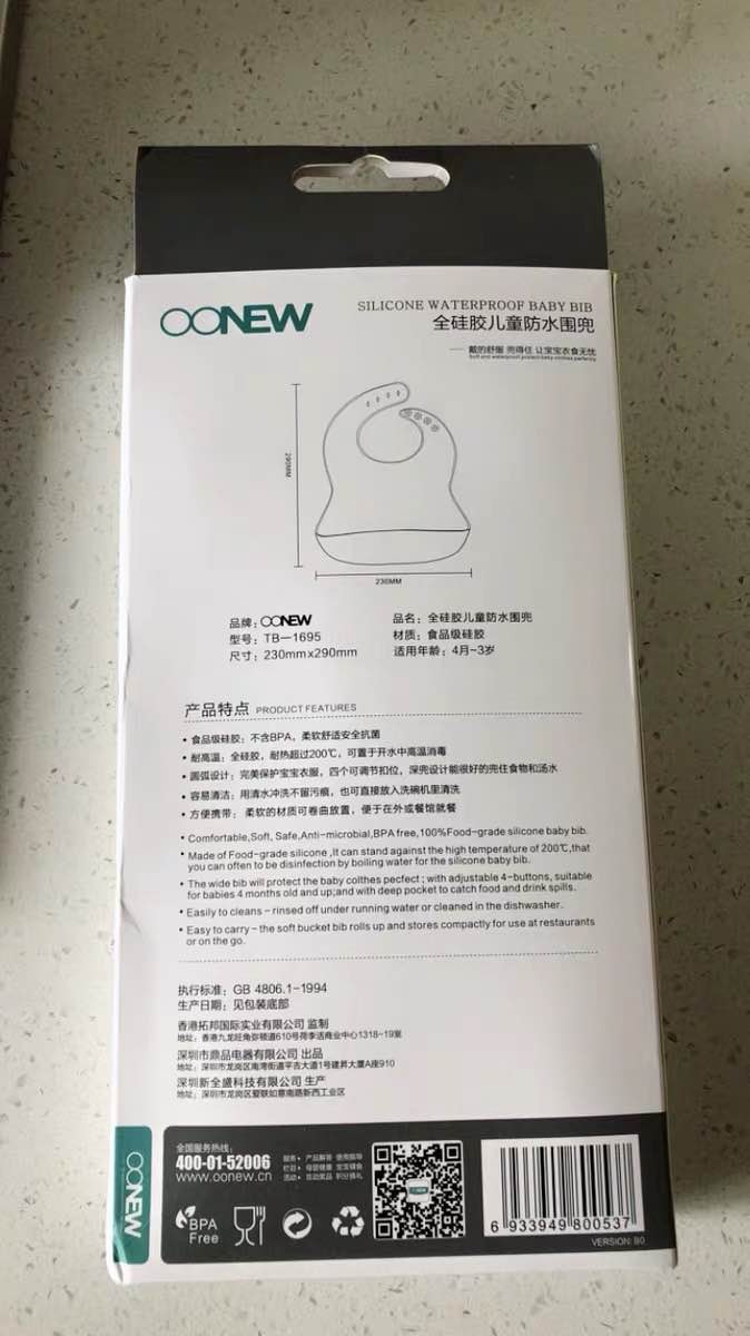 食品级硅胶材质,防水防油易清洗,非常放心也很方便。包装正规,生产日期和生产厂家都写的挺清楚,用起来也放心