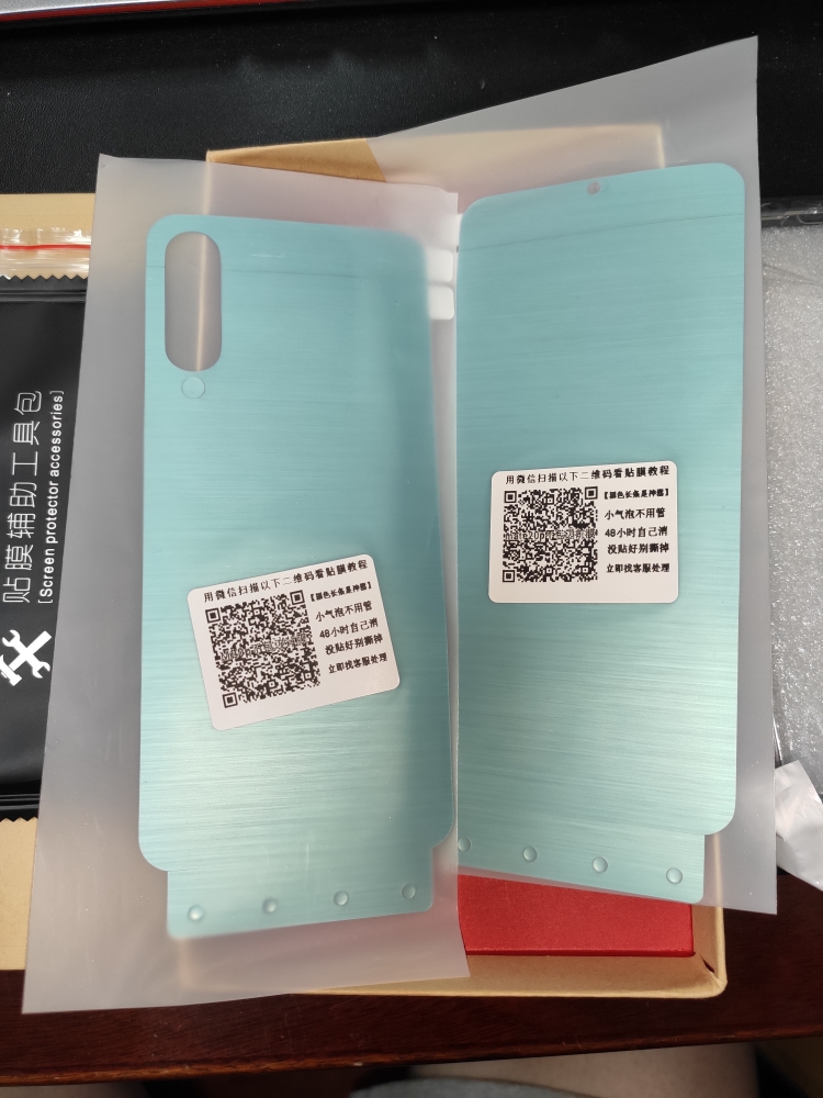 快递很快,收到试用申请通过的消息很高兴,马上和店家确认了试用的手机型号,客服也很热情,记录下了备注。2天以后收到了保护膜,包装的很好,打开以后全部的配件都在。