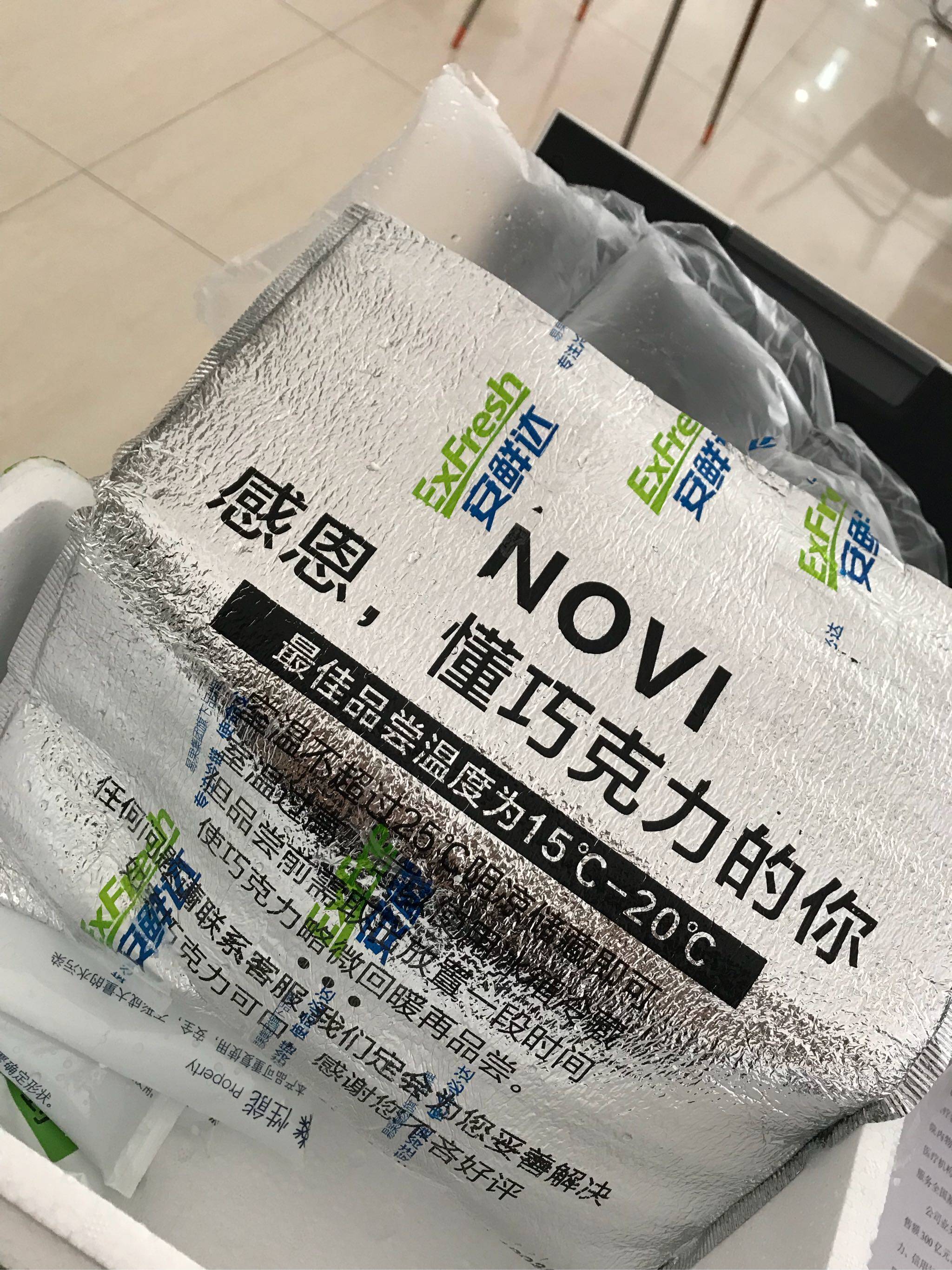 收到这个包裹,整个大箱子,里面放了冰袋,顺丰邮寄,因为周末不上班,导致周一收到,巧克力已经有点软化了,但整体觉得还不错口感和包装