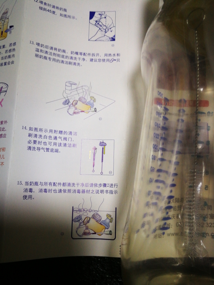 清洁刷直接包装在瓶子里了,说明有详细介绍清洁的注意事项,适合我们这种新手爸妈