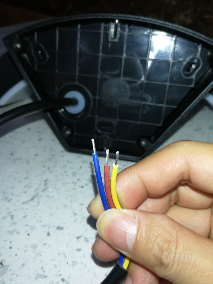 安装板三个固定孔,稳固。线为三股电缆有接地线。