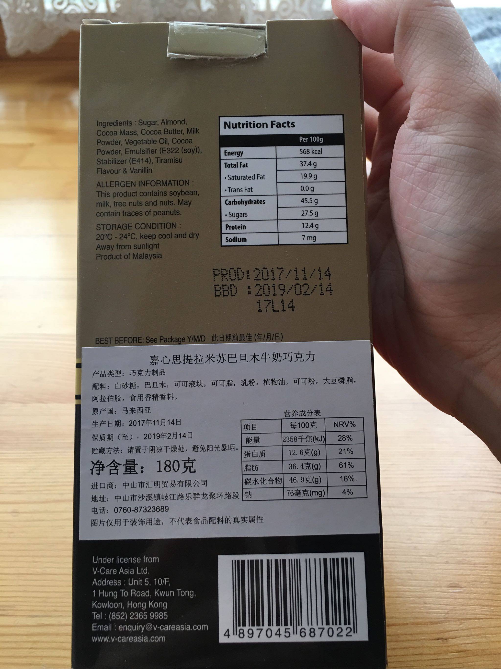 优点:价廉物美!发货速度快!天气热巧克力也没有融化!提拉米苏味道很浓!里面的巴达木也很好吃!整体来说性价比还是可以的!