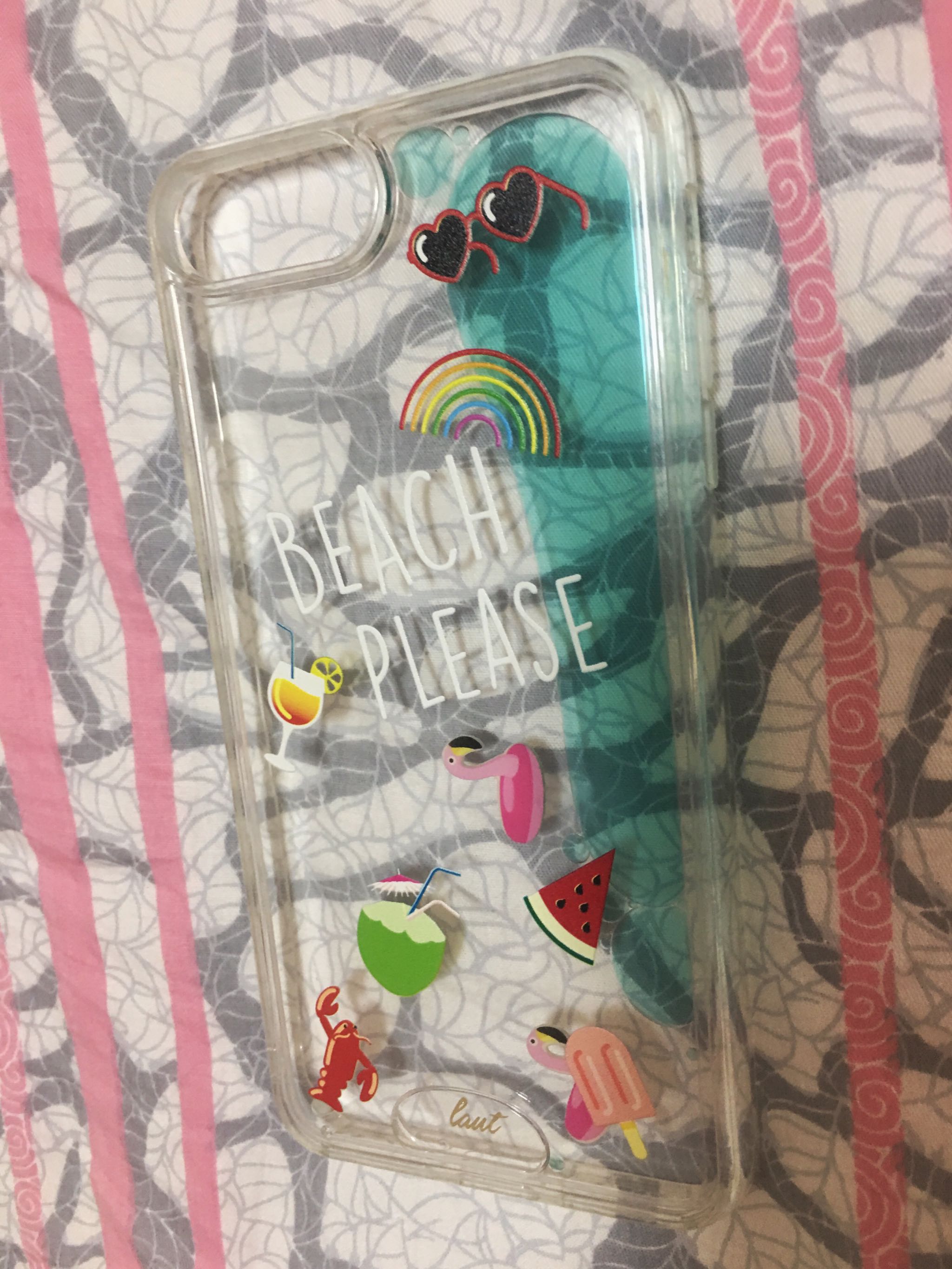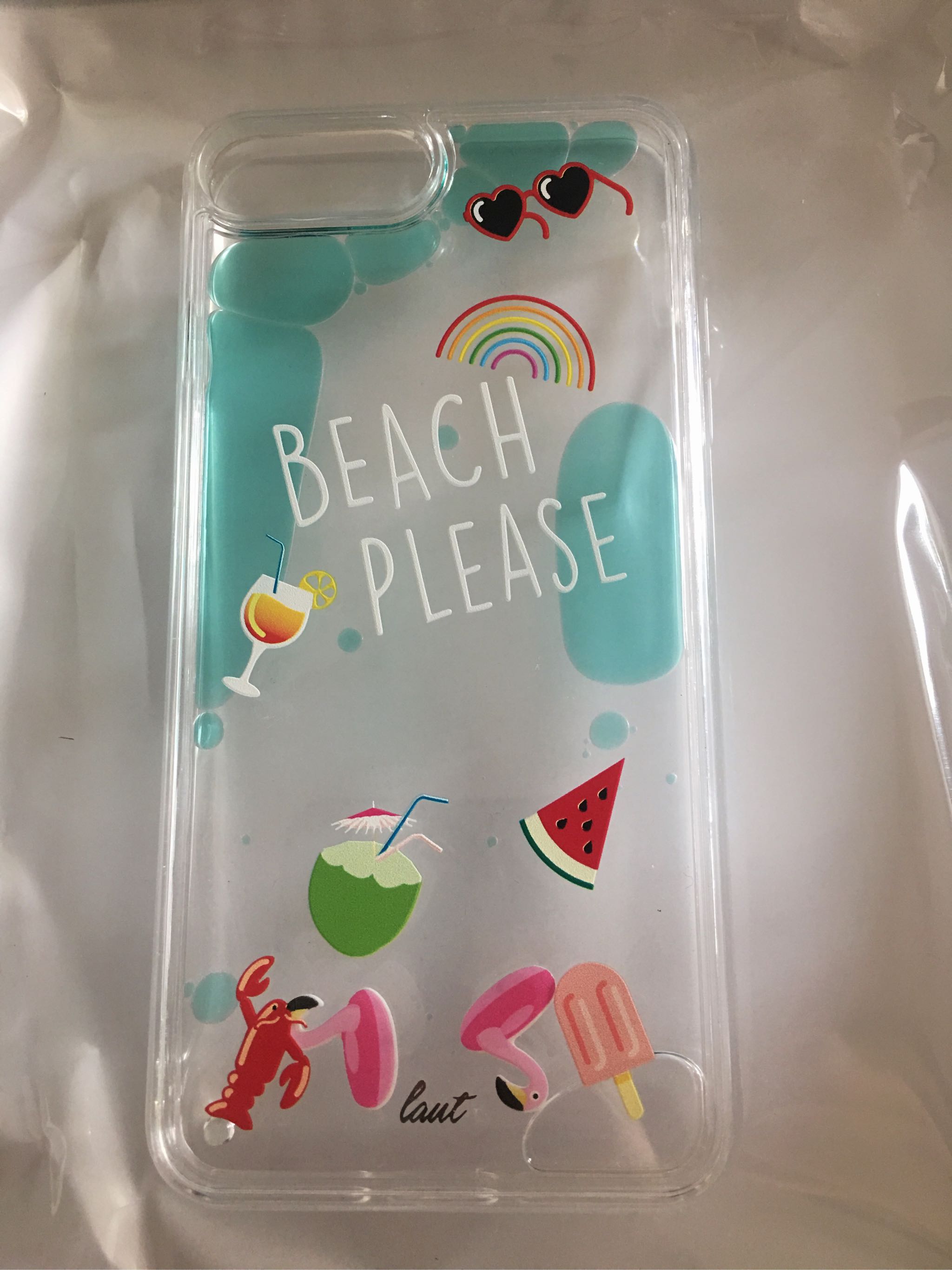 手机的图案充满了夏天的味道,太阳镜、鸡尾酒,和蓝蓝的颜色搭配相得益彰。