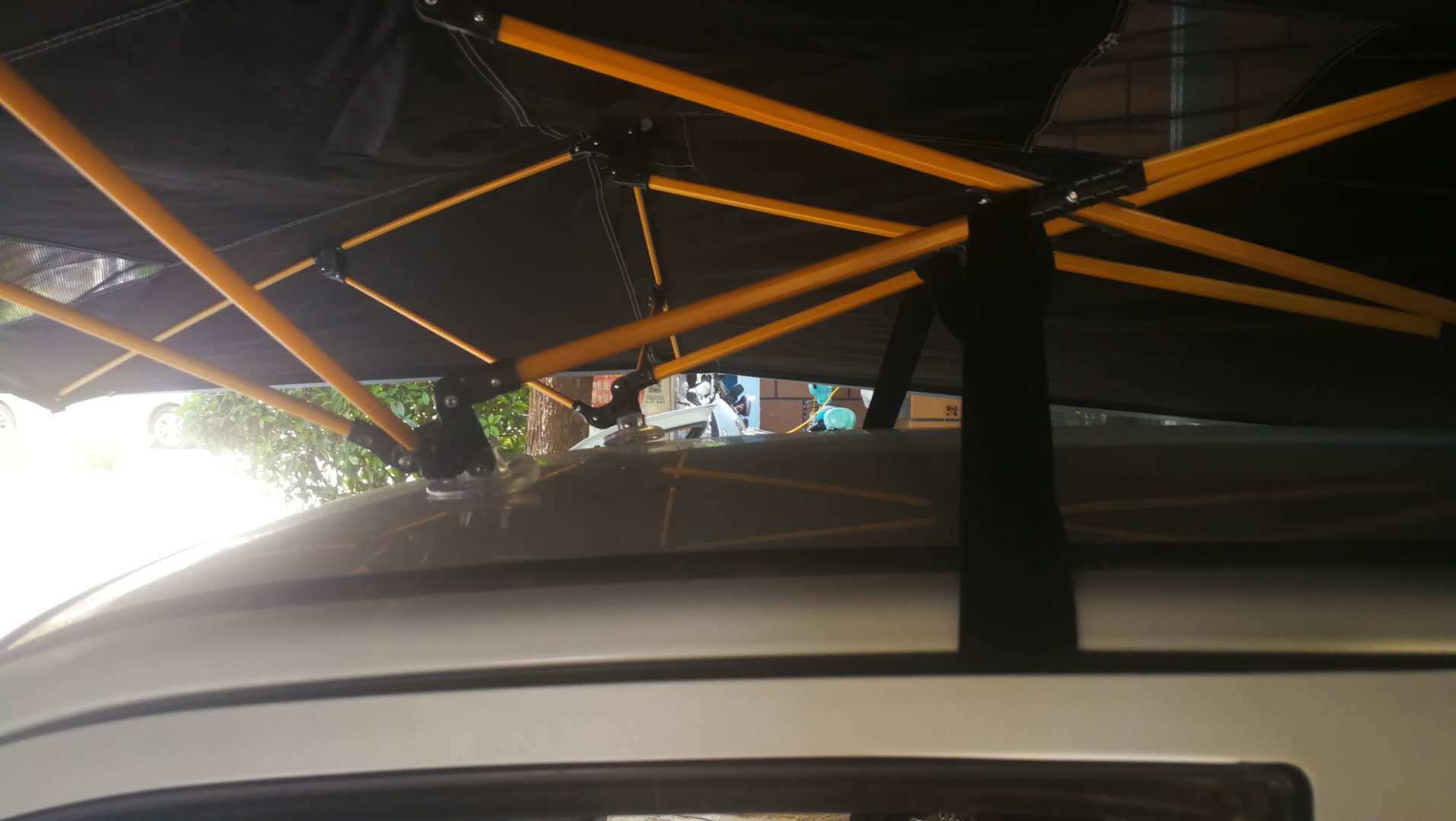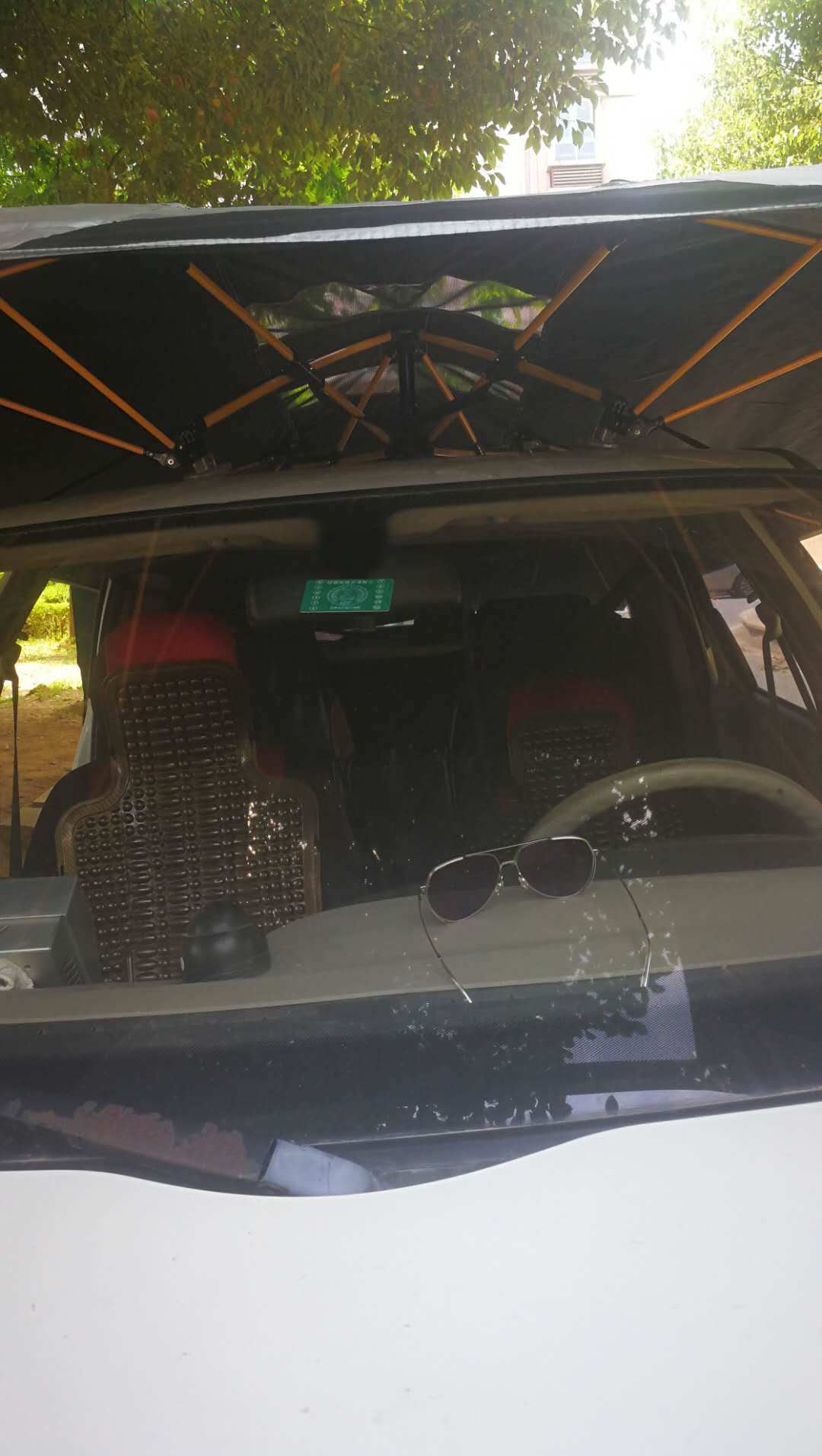 优点:防晒效果杠杠的,其他没有防晒伞的学员都羡慕的看向这里,哈哈,可以多用途,也没有阻碍视角,收纳方便快捷,固定的很坚固,非常好,开门窗户都不受影响,再也不用担心晒黑了