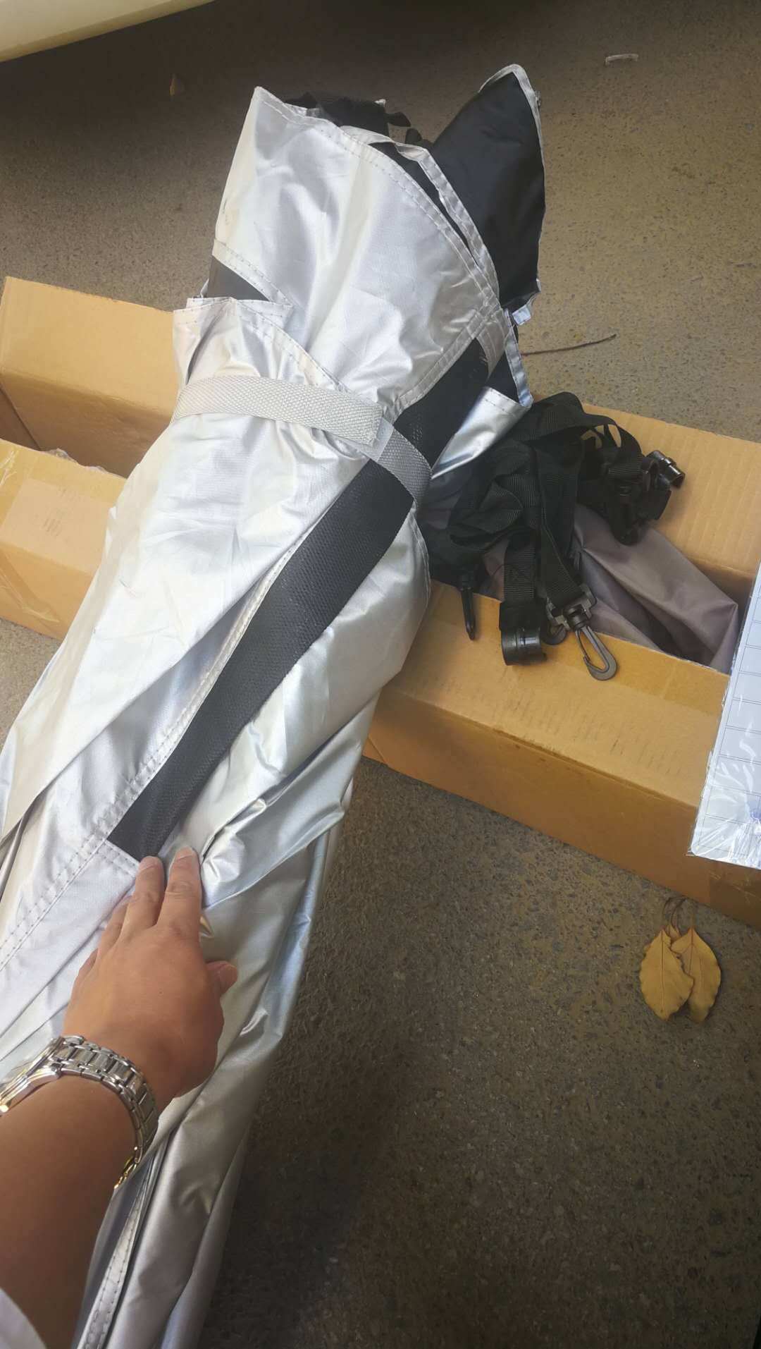 收纳以后很小,放后备箱也不占地方,可以用袋子收紧