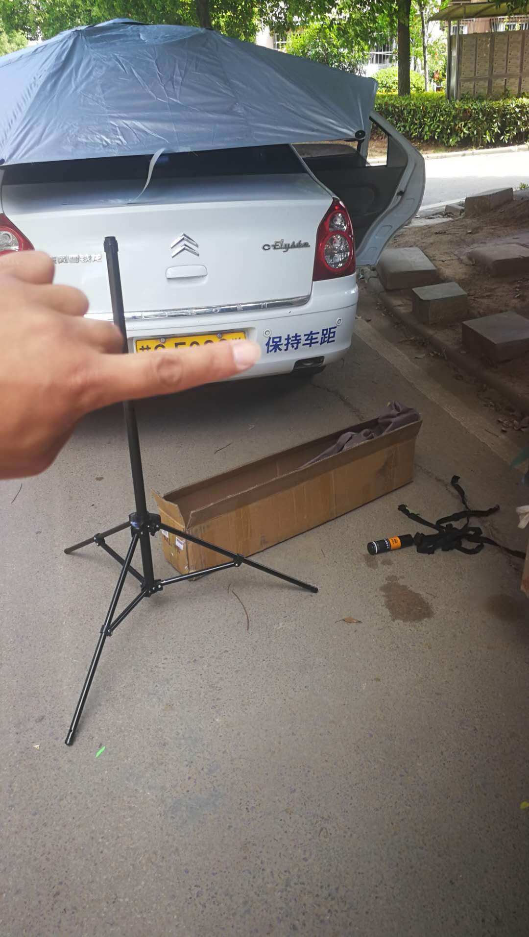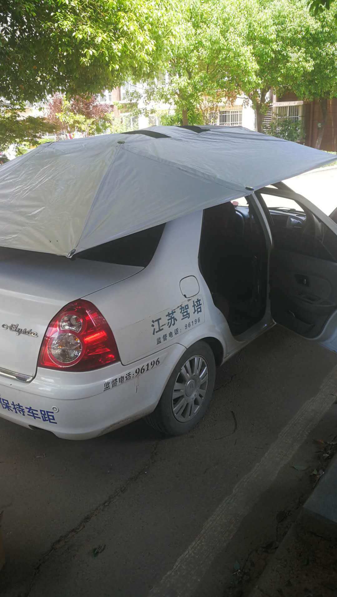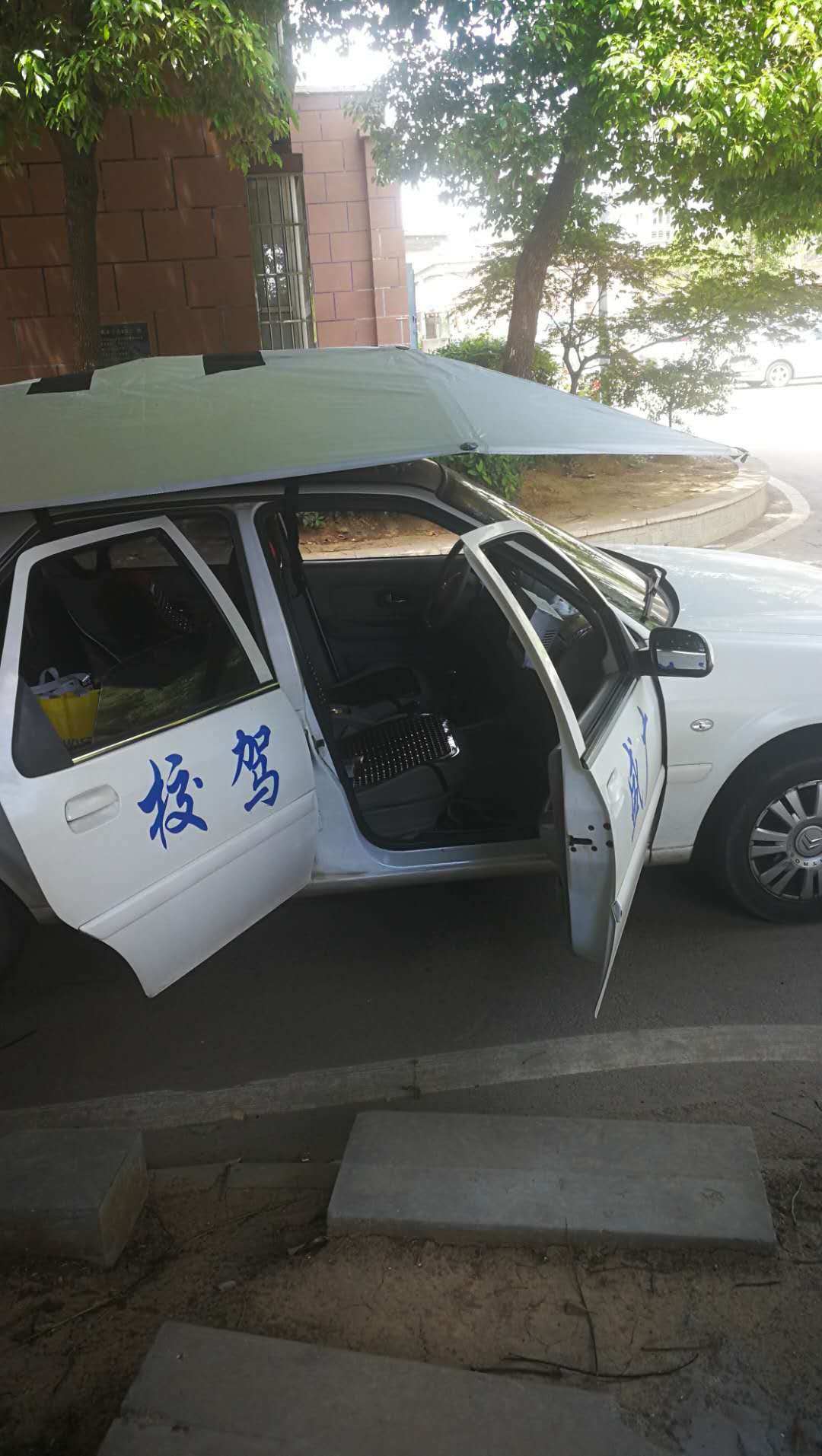 支架单独来一张,因为十分坚固,路边可以当做防晒亭子,学员们不会在等待练车中被晒黑了,都开心的不得了