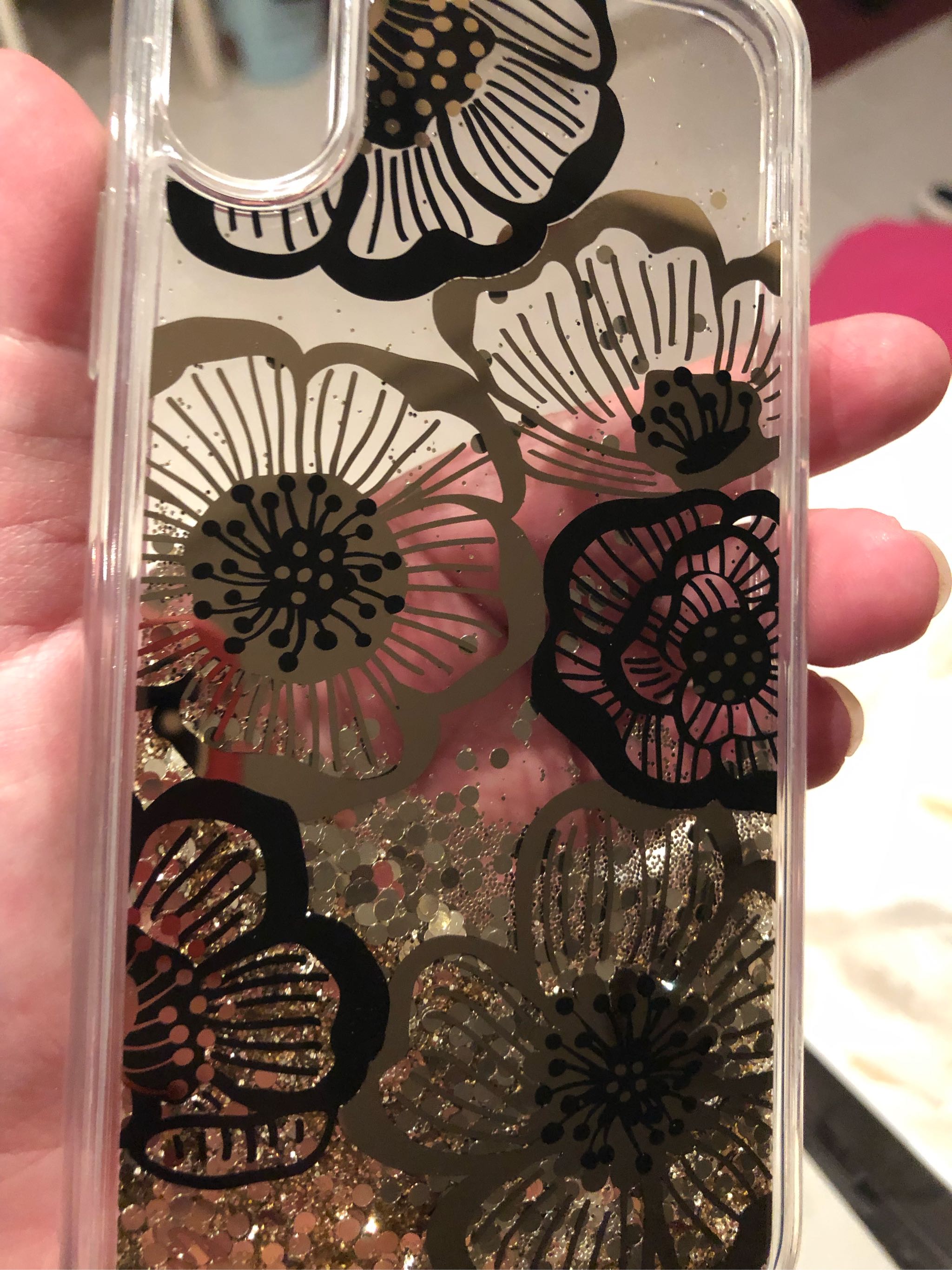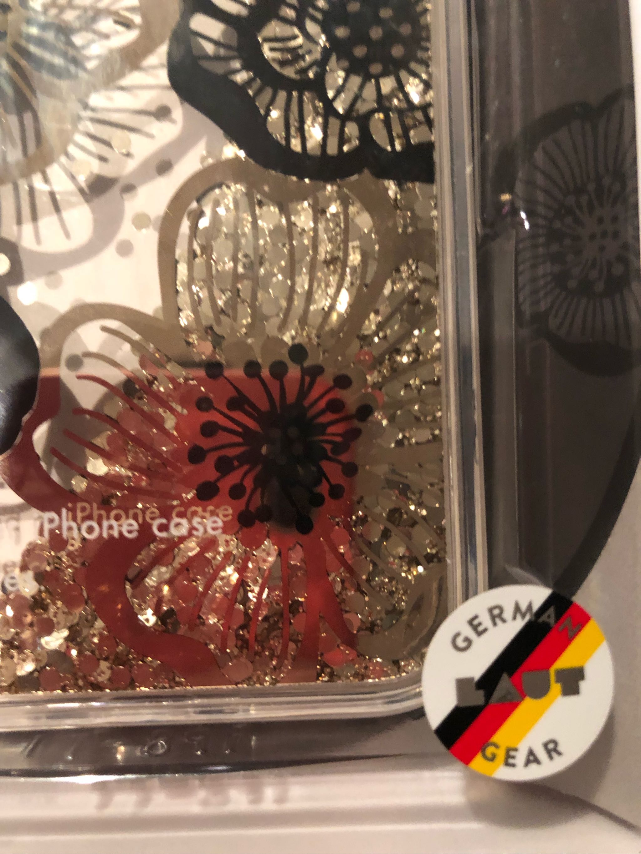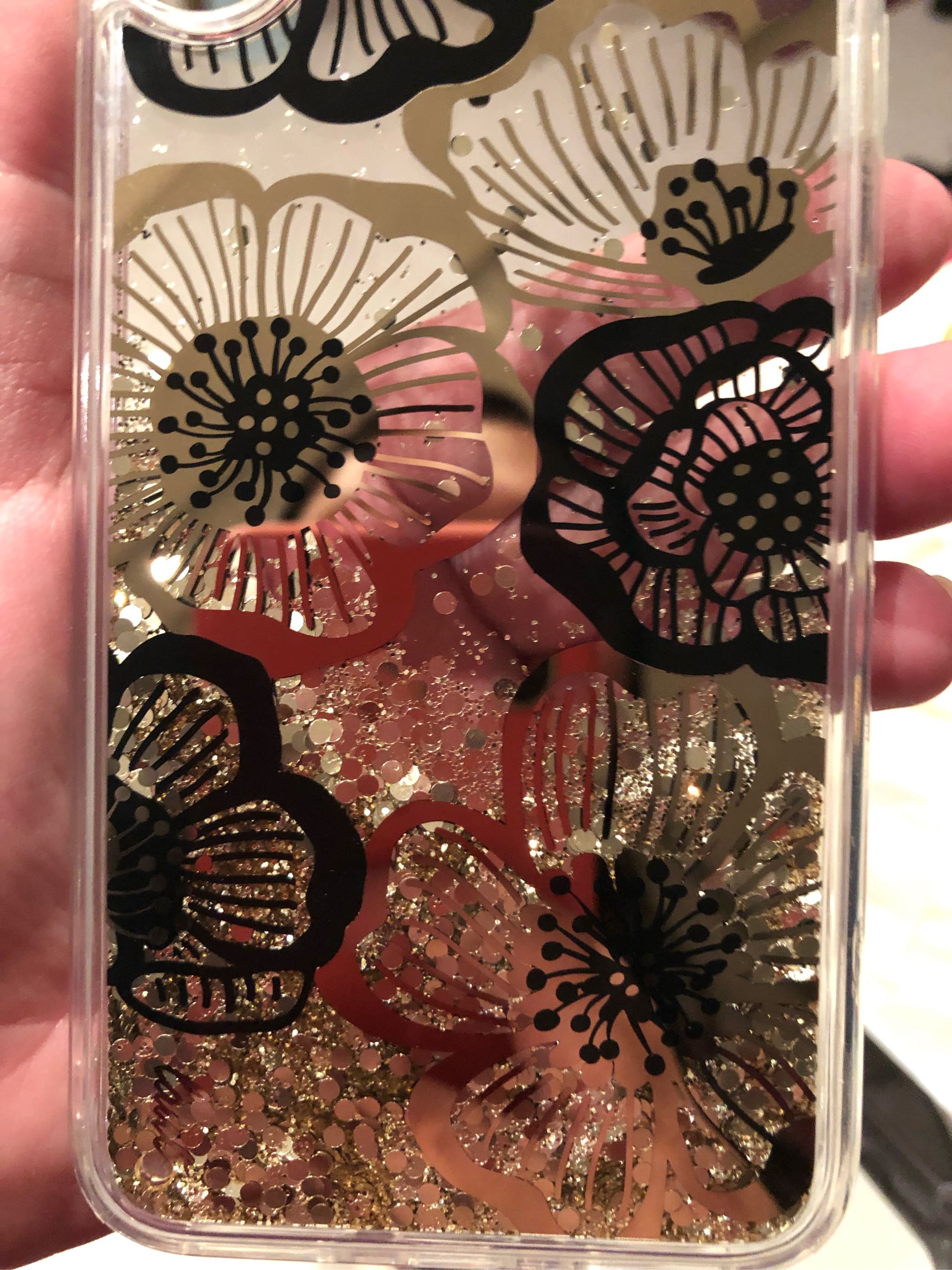 整体很漂亮,材质很好,套手机上简直不要太闪耀啦 ,包装精致,完好无损,流动的金片真的很舒服,夏天用给人一种很凉爽的感觉!
