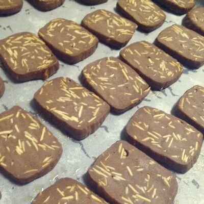 这个是用熔化的巧克力酱做的杏仁巧克力饼干,非常香浓