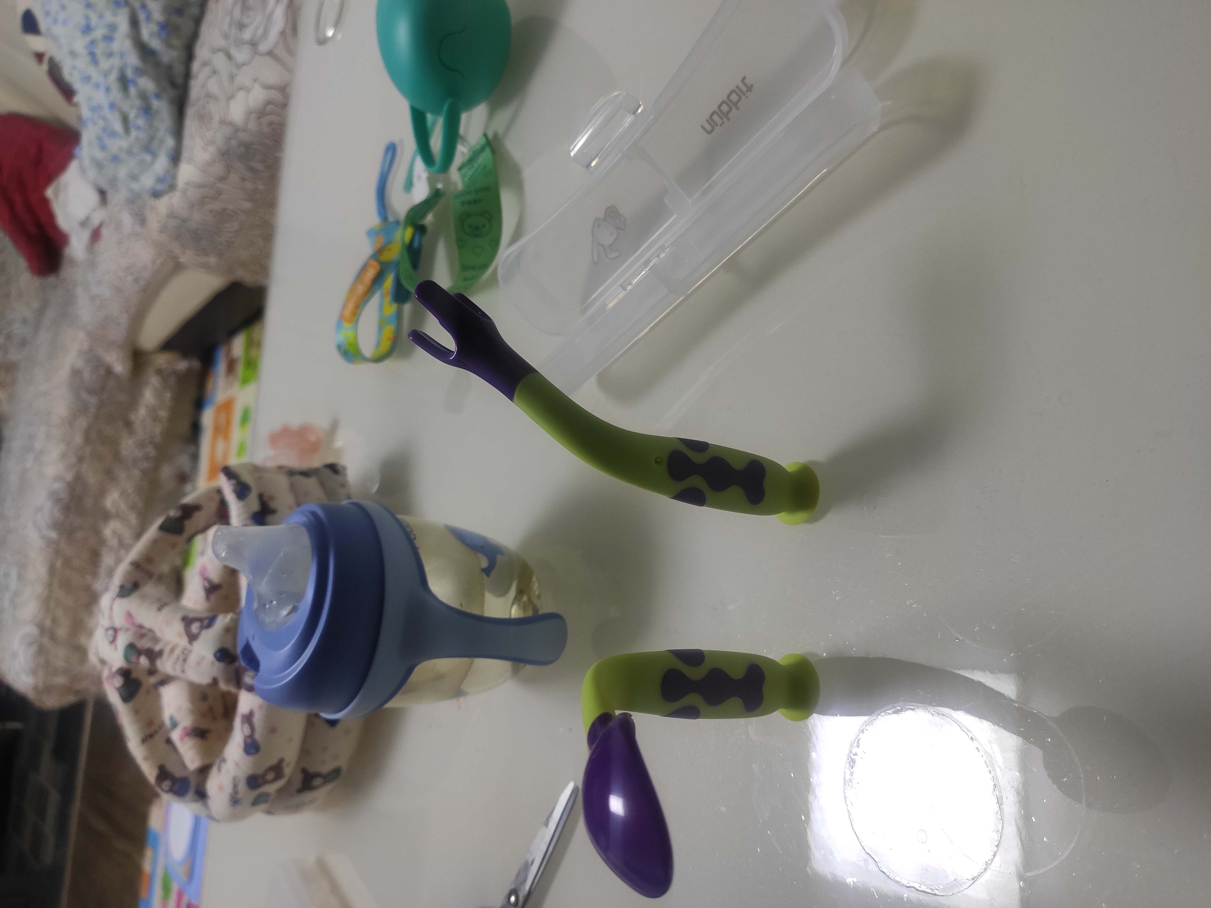 勺子和叉子都是可以随意弯曲角度的,用起来宝宝超级省力,根据宝宝的使用习惯来调整弯曲角度,没事宝宝还会自己掰着弯,实用和玩了两不误。