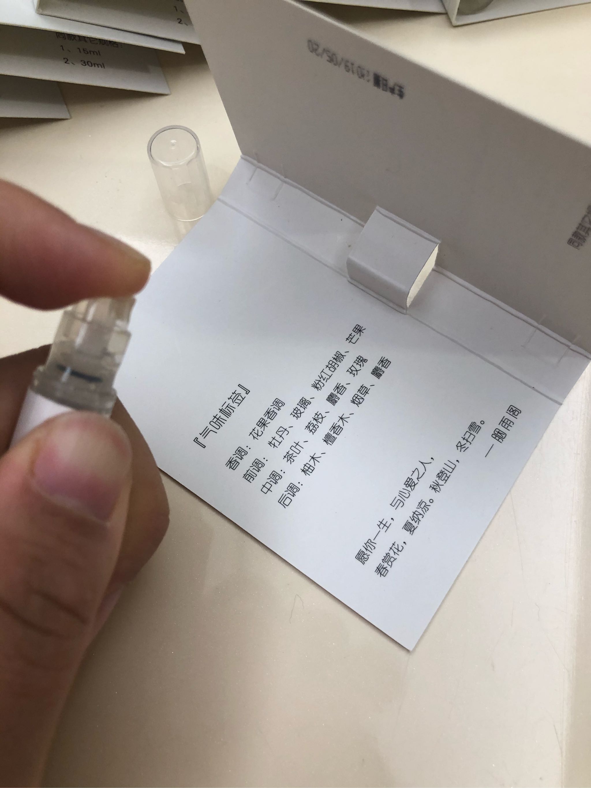 先拿了个“断桥残雪”试香,里面有很清楚的介绍了这只香水的香调。