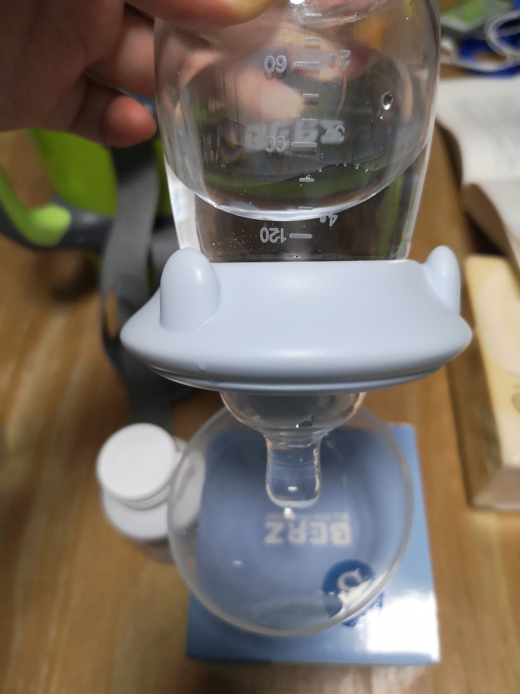 奶瓶即使倒立液体也不会溢出,非常的优秀,奶瓶就应该具备这样的功能。