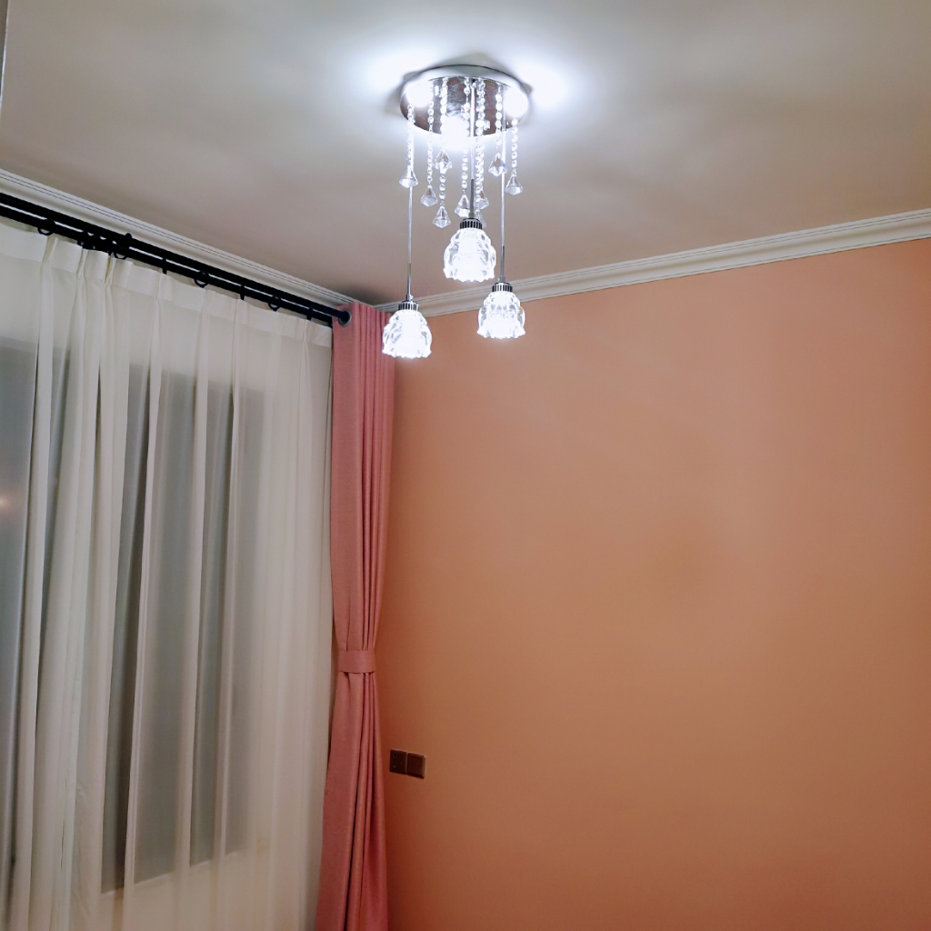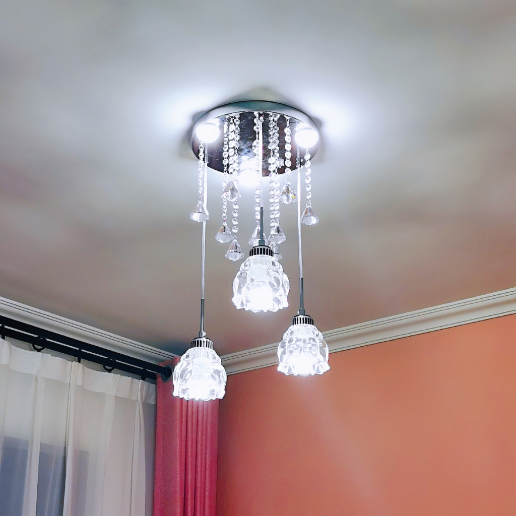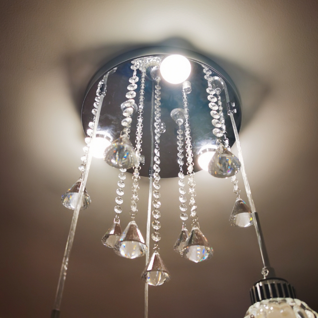 优点:非常精致的水晶灯,自己安装起来比较有成就感。暖光开灯很温馨。