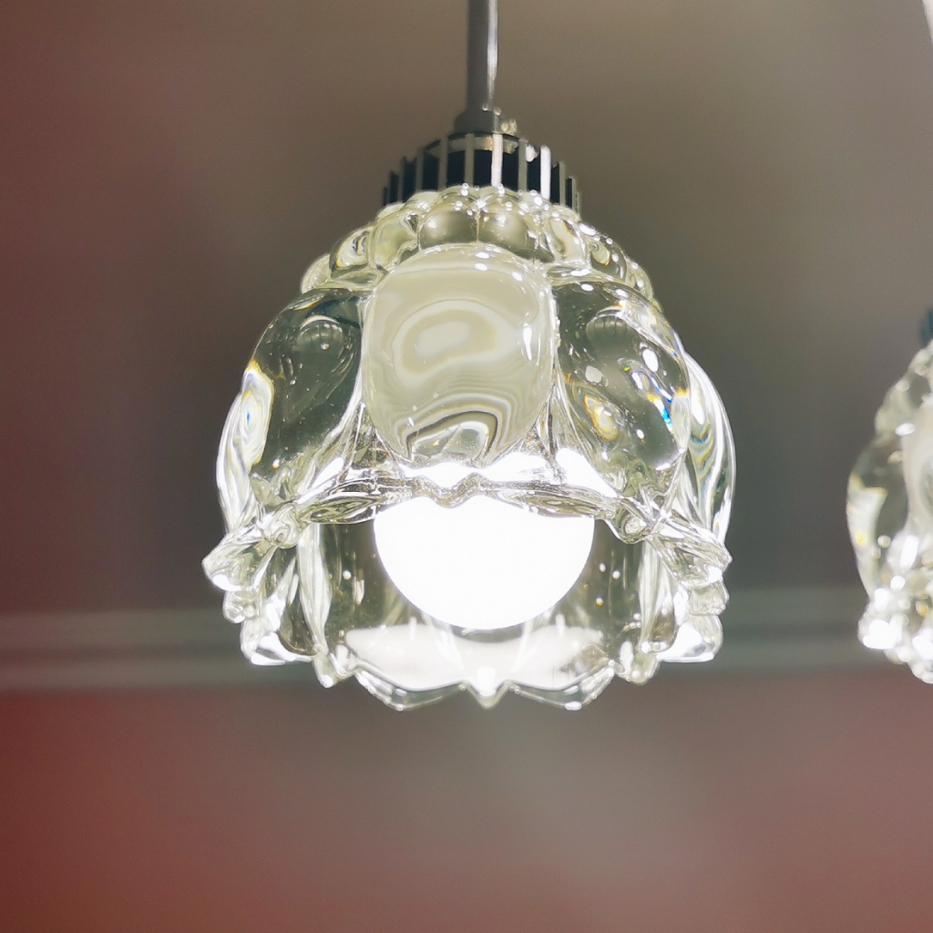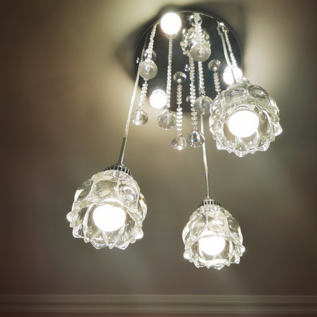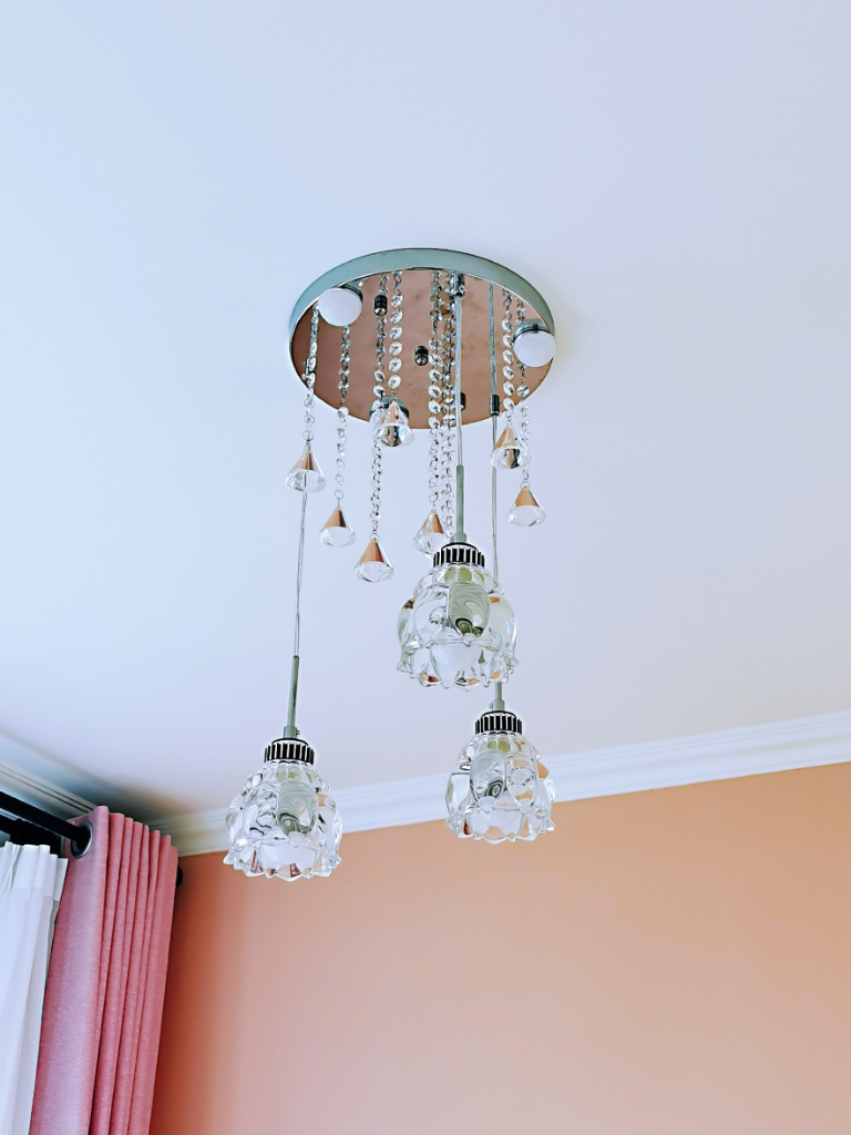 三头吊灯,水晶在亮起来的时候真的可以用光彩夺目来形容。