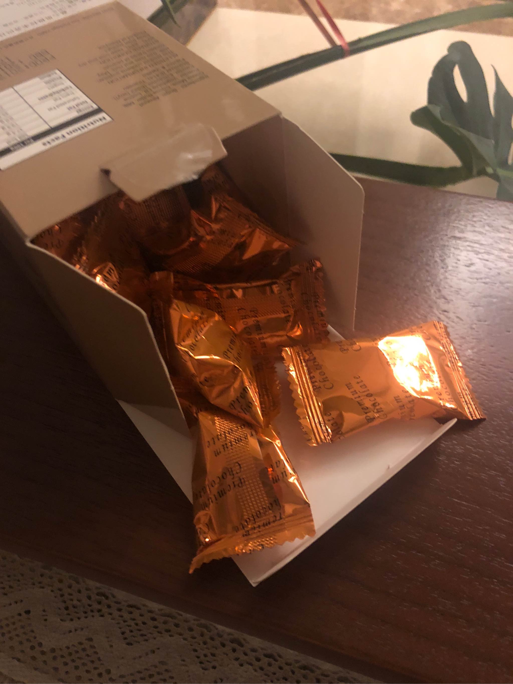 小袋包装非常卫生,口感很醇厚,外层是巧克力里面是坚果,太适合我这种低血糖星人随身携带了