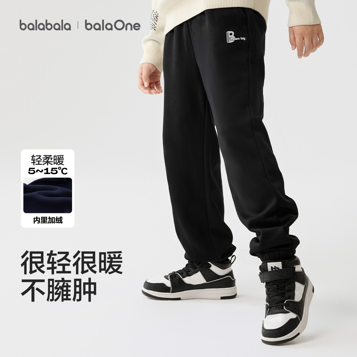 巴拉巴拉 男童加绒裤子儿童裤子女童冬季款儿童运动裤亲子裤大童户外休闲裤