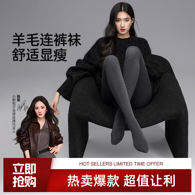 小野和子 【杨幂同款】打底裤女秋冬新款连裤袜高弹修身显瘦羊毛保暖裤子女
