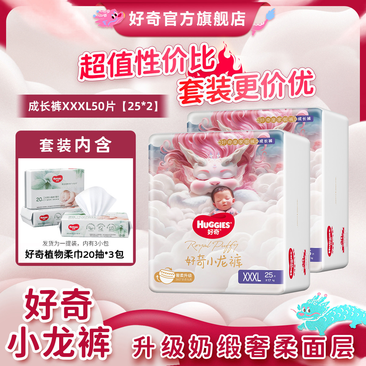 好奇 皇家御裤小龙裤拉拉裤超薄透气成长裤L/XL/2XL/3XL