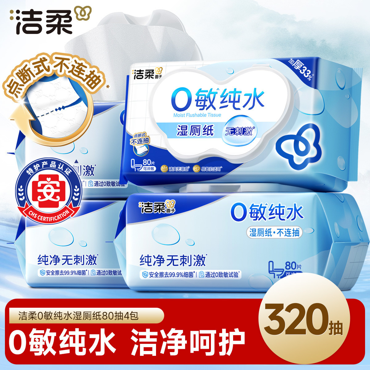 洁柔 【320抽湿厕纸】0敏纯水湿纸巾点断设计易抽取湿纸巾易冲无添加