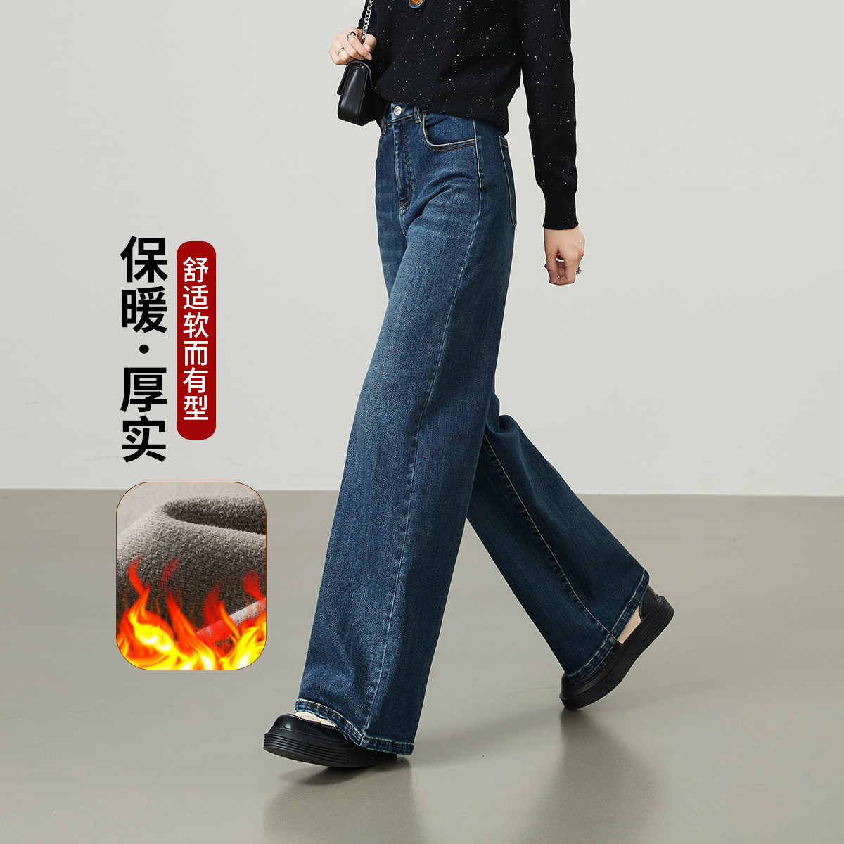 逸阳 复古加厚阔腿裤棉弹牛仔裤女2025秋冬新款软垂小个子宽直筒裤