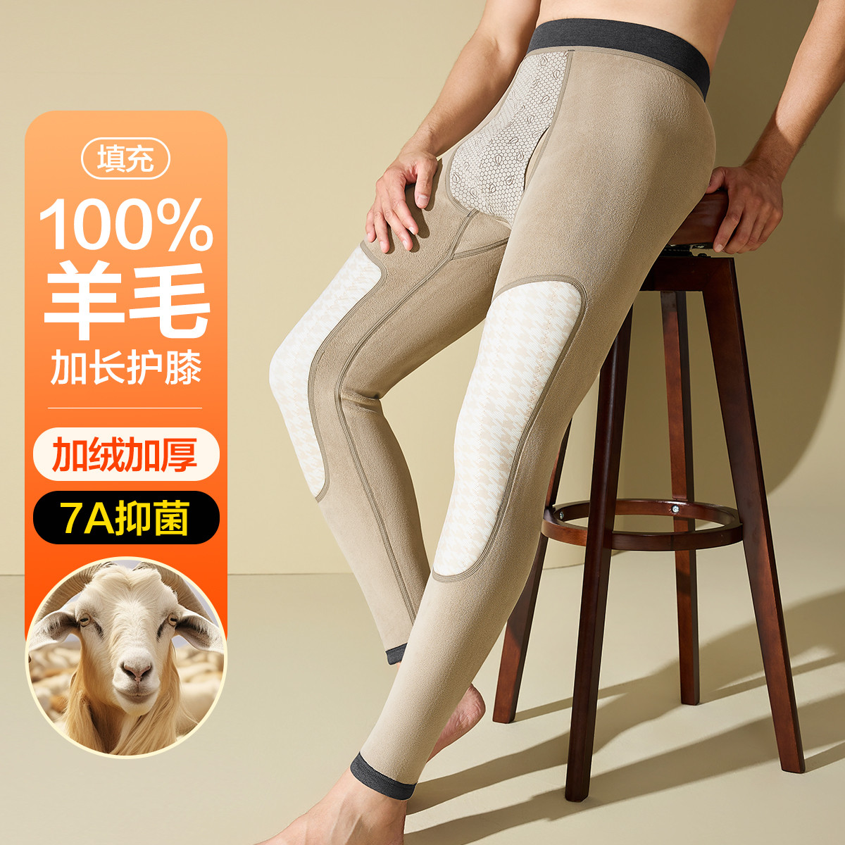 恒源祥 【含100%羊毛填充】7A抑菌免穿内裤加绒防风抗寒男士保暖裤